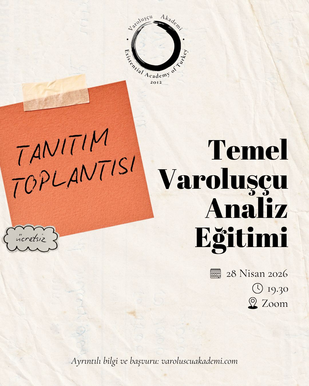 Temel Varoluşçu Analiz Eğitimi Tanıtım Toplantısı 11 Nisan 2026 tarihinde Jak Icoz tarafından gönderildi Detaylı bilgi ve kayıt için tıklayınız. Bunu paylaş: X'te paylaş (Yeni pencerede açılır) X Facebook üzerinde paylaş (Yeni pencerede açılır) Facebook Beğen Yükleniyor... İlgili