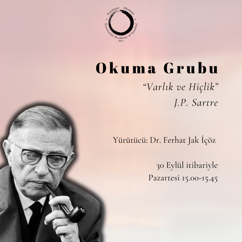 30 Eylül Pazartesi başlayacak ve Haziran’a kadar her hafta devam edecektir. Ferhat Jak İçöz’ün yöneteceği okuma grubu süresince “Varlık ve Hiçlik” her hafta birlikte okunacak, yorumlanacak ve tartışılacaktır.
