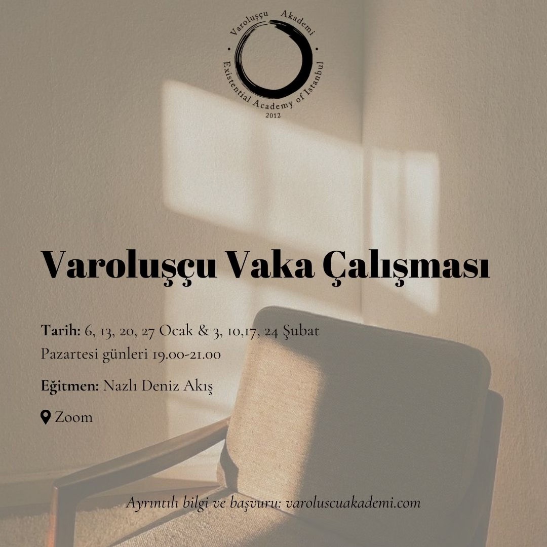 Eğitimin Amacı: Bu eğitimde eğitmenin getireceği bir vaka üzerinden ilk seanstan bitişe varoluşçu bir terapinin nasıl ilerlediği sunulacaktır. 8 hafta boyunca bir danışanın terapi süreci üzerinden, seanslardan kesitler ile kuramsal bilgilerin terapi uygulamasındaki yansıması incelenecektir.